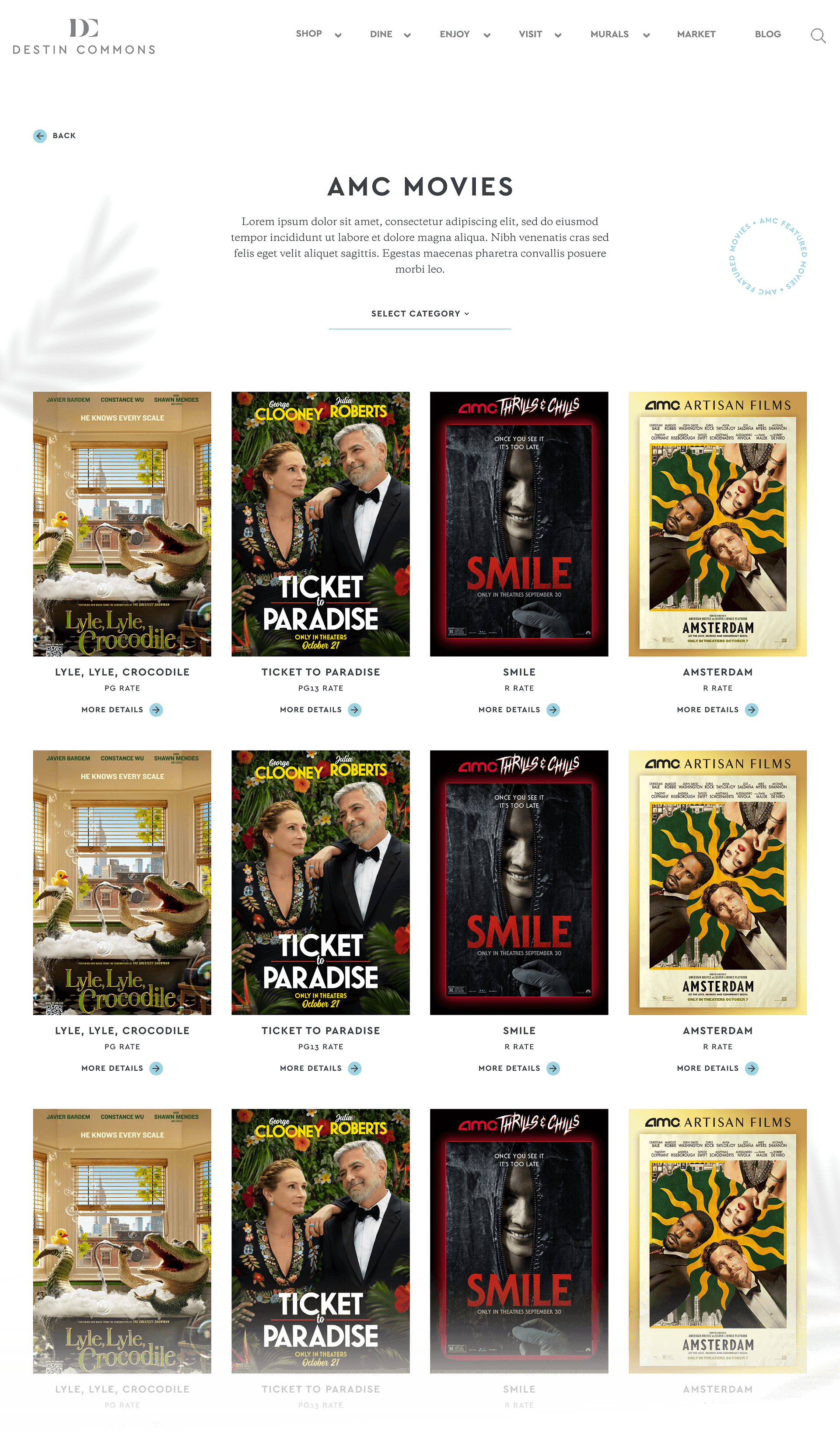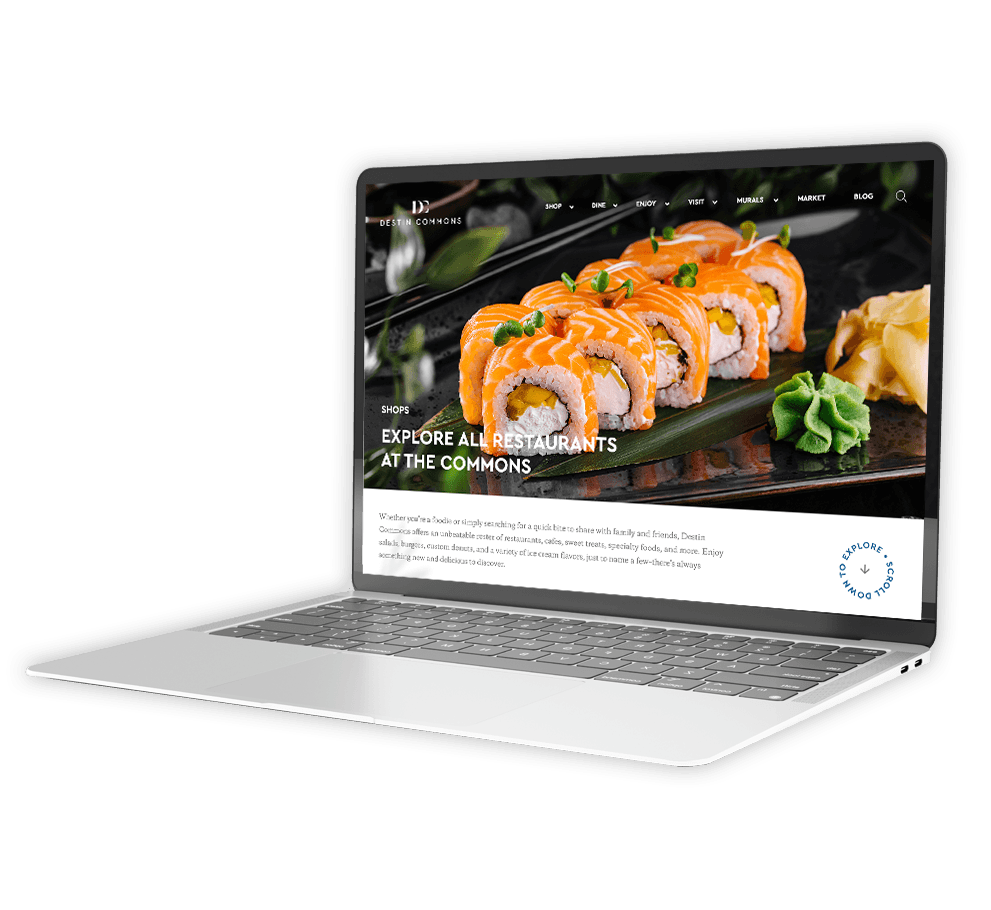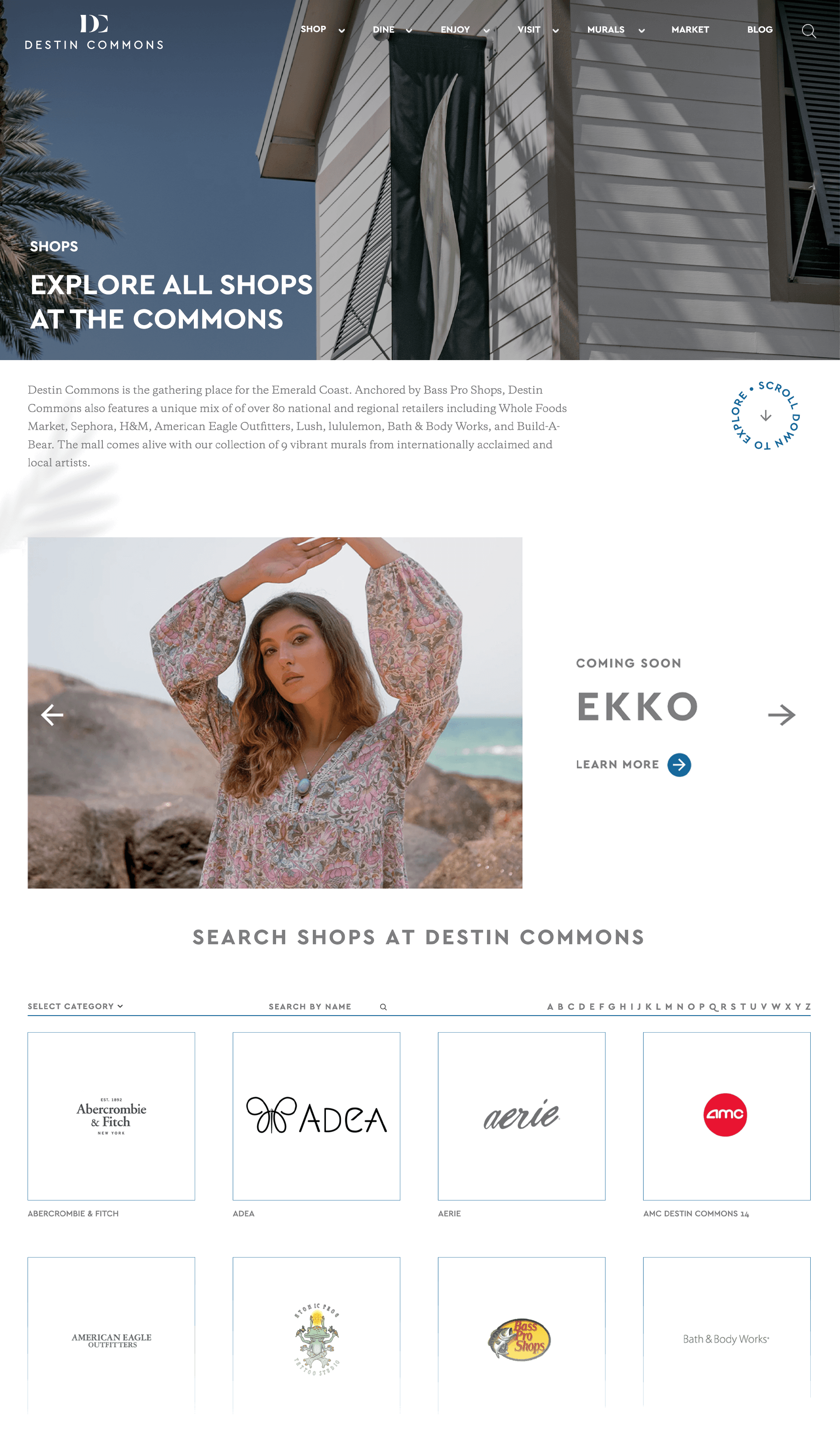 I designed the Destin Commons homepage to clearly showcase its dining, shopping, and entertainment offerings in a clean, streamlined layout that’s easy to navigate and visually engaging.