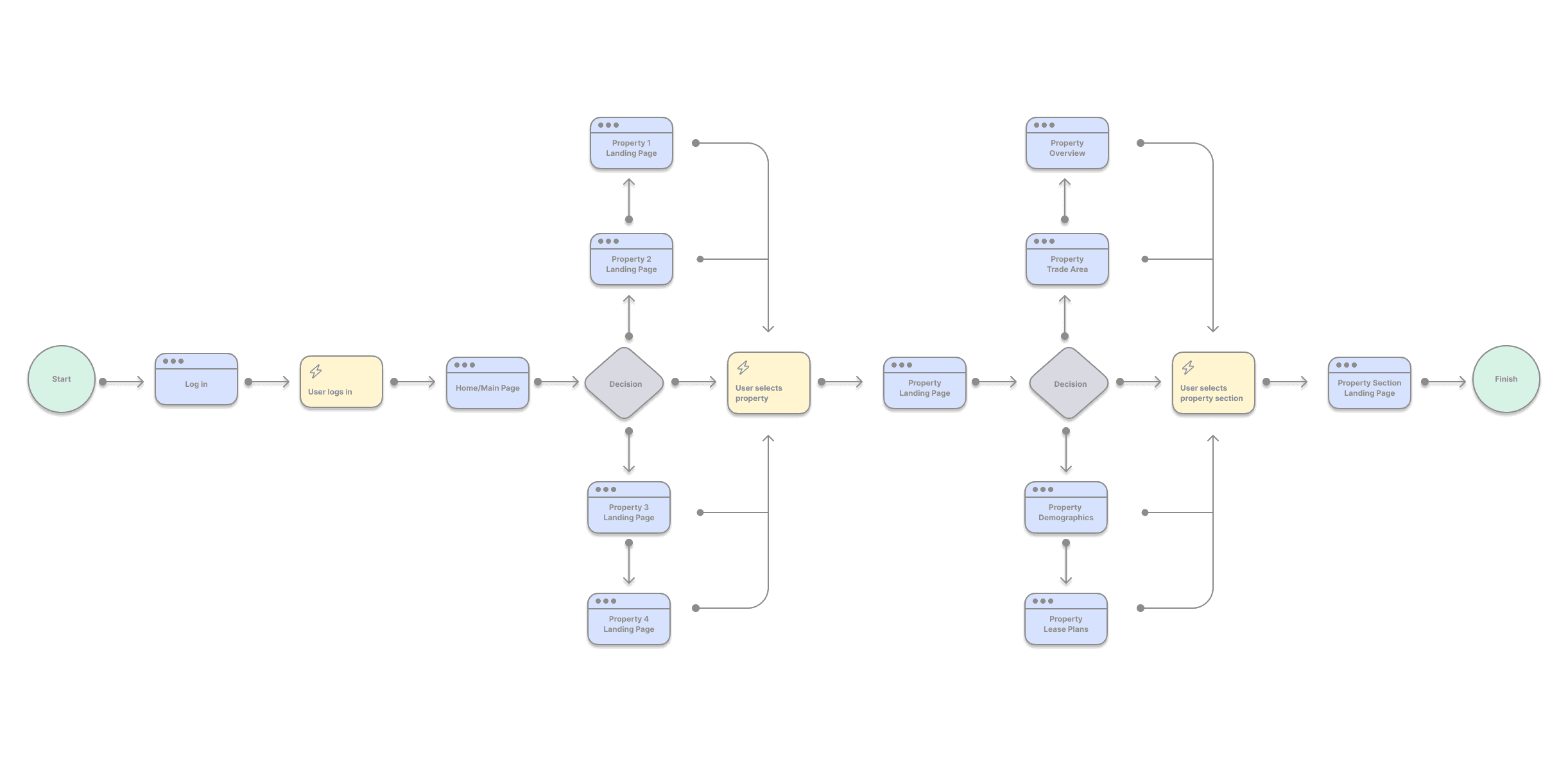 To empower users in pitching to their prospects, it's essential to create a seamless and intuitive user flow. The following task flow outlines the key steps users take to efficiently navigate the platform when presenting a property to potential tenants.